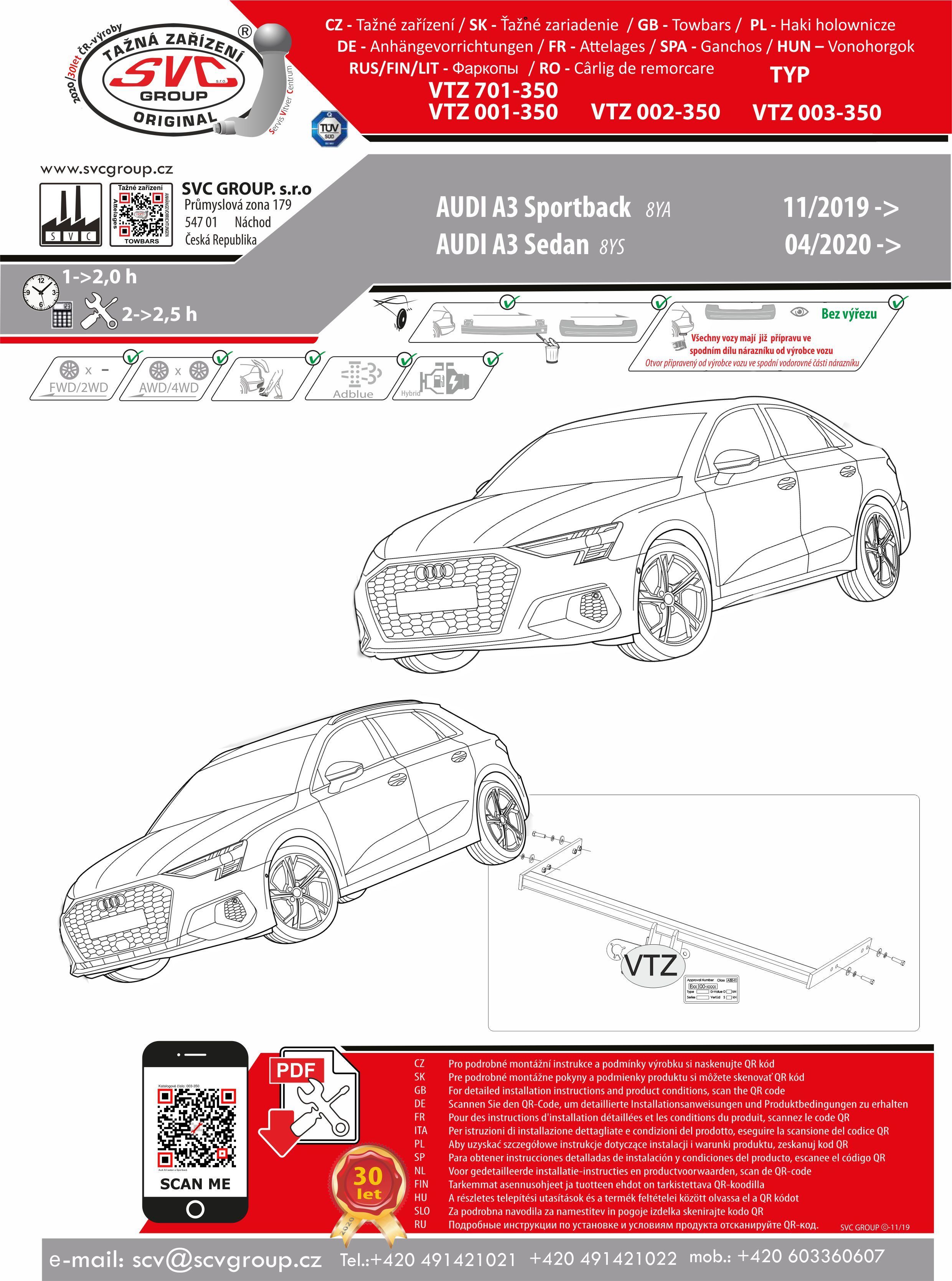 Tažné zařízení Audi A3 08/2023->, Sportback