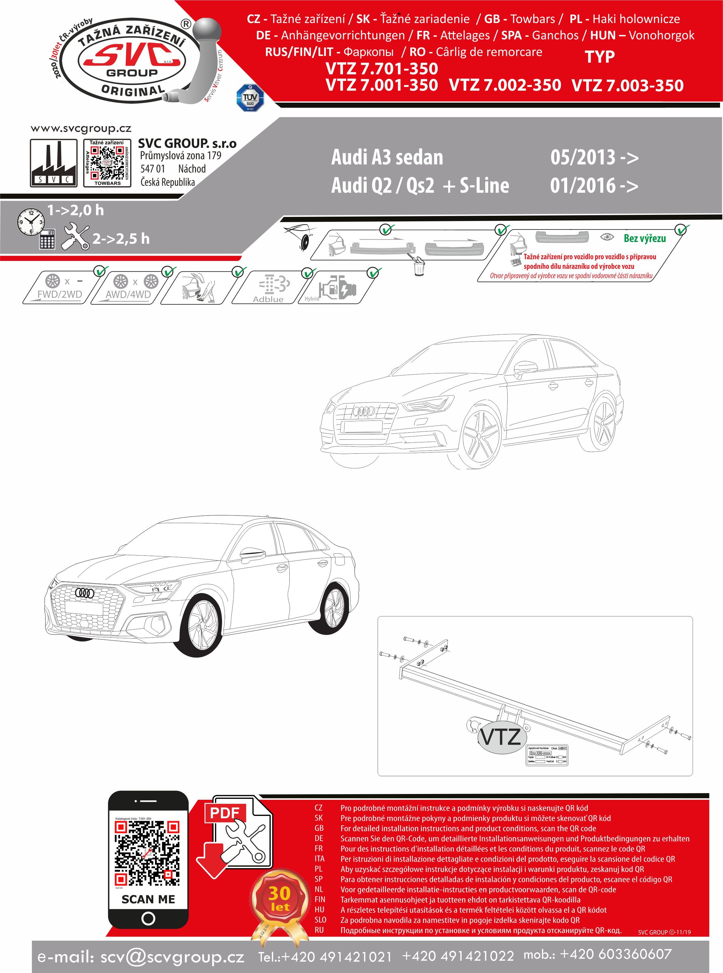 K tažnému zařízení je dodáván zdarma montážního návod, typový list pro zapsání do technického průkazu a na webu výrobce jsou rozšířené informace pro podporu montáže a použití výrobku.