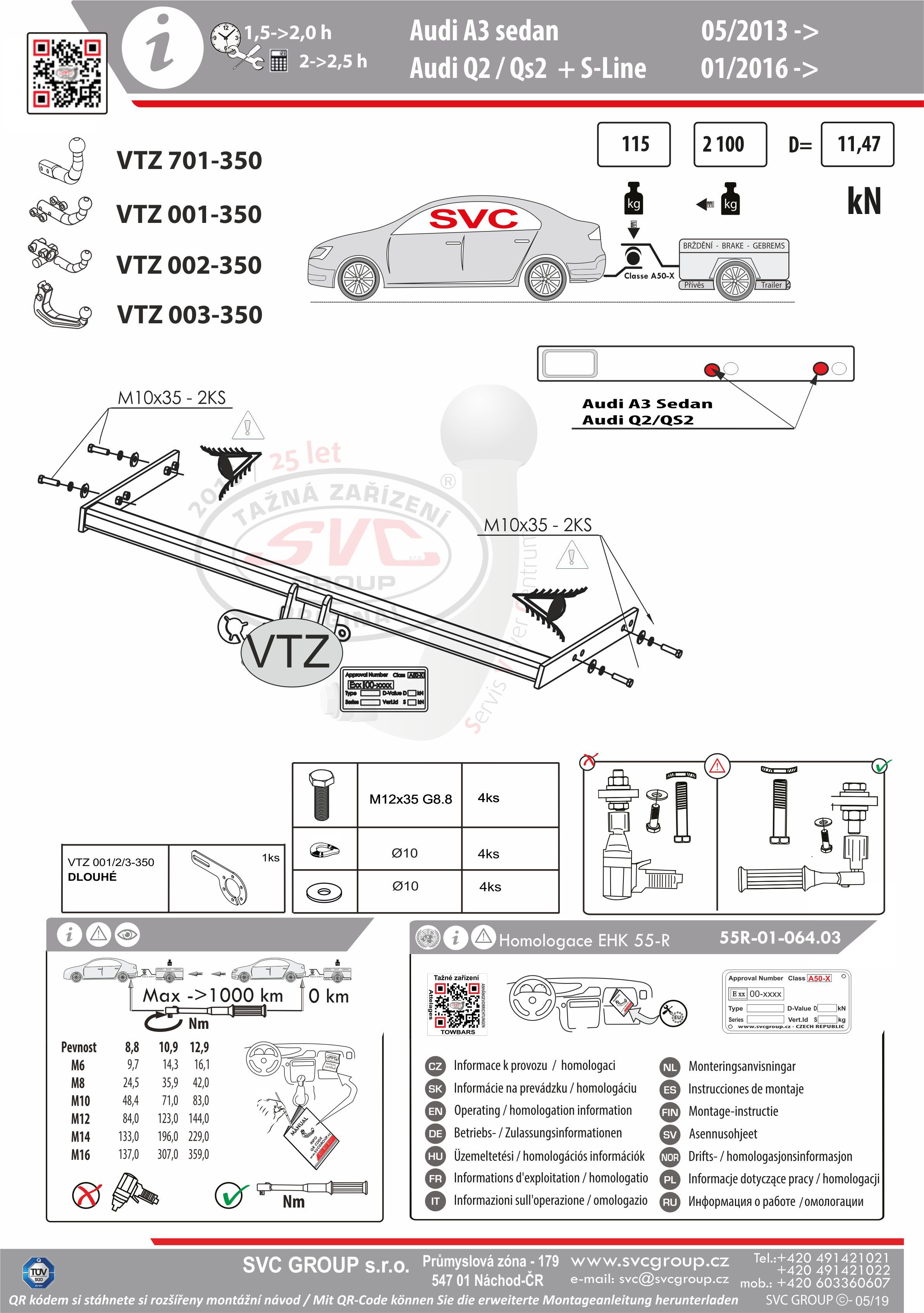 Výrobek je vyráběný dle požadavku vozu a Homologovaný pro prodej a provoz ve všech státech EU dle příslušných norem EHK-55R, podle zastaralé normy e94/20 zrušené již v roce 2016, která nesplňuje, dlouhodobě podmínky pro provoz nevyrábíme. Chráněný vzor SVC - bajonet SVMAT-2 je možné zaměnit za dvou šroubové provedení SVC, bez výměny tažného zařízení.