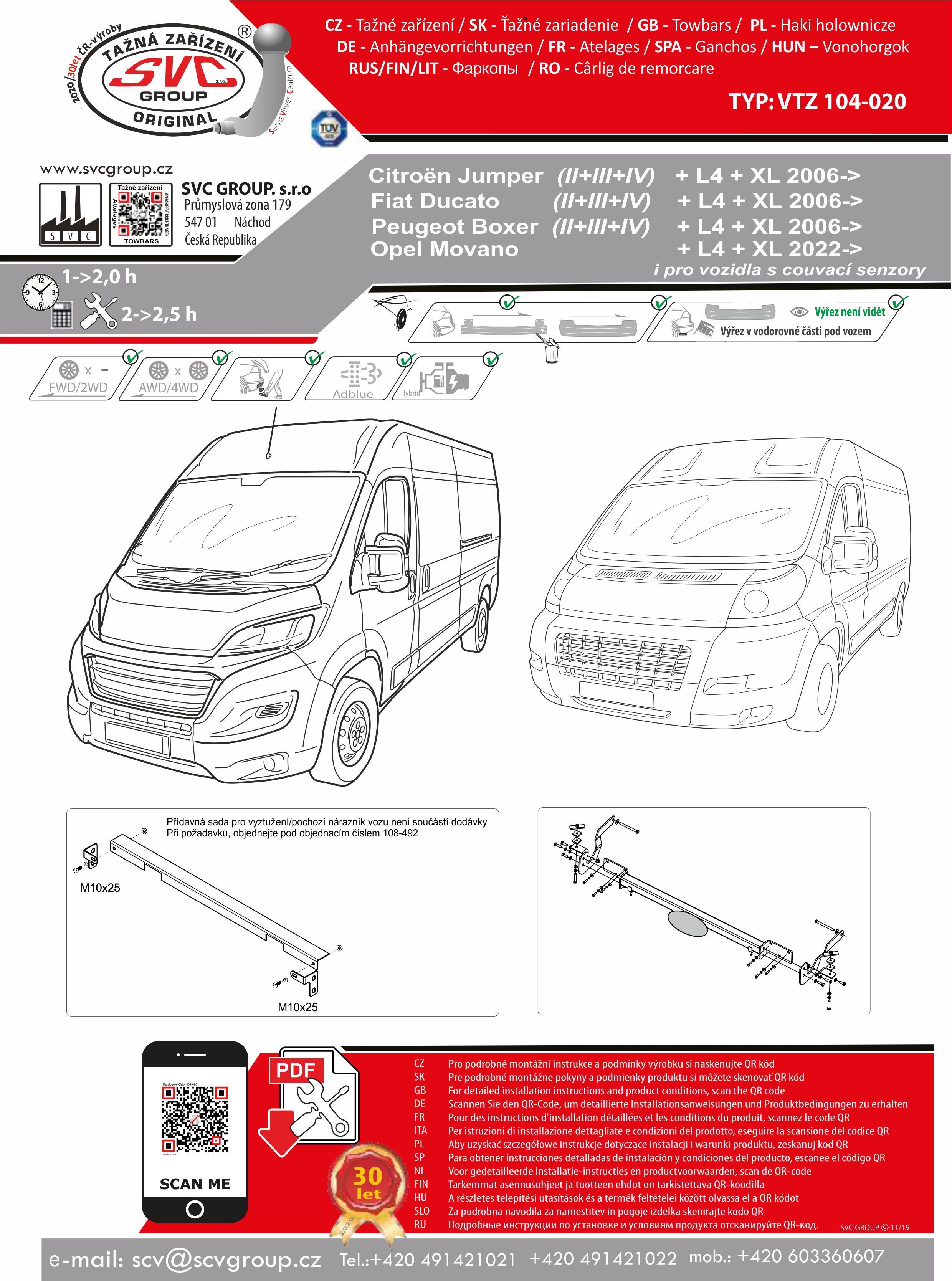 K tažnému zařízení je dodáván zdarma montážního návod, typový list pro zapsání do technického průkazu a na webu výrobce jsou rozšířené informace pro podporu montáže a použití výrobku.
