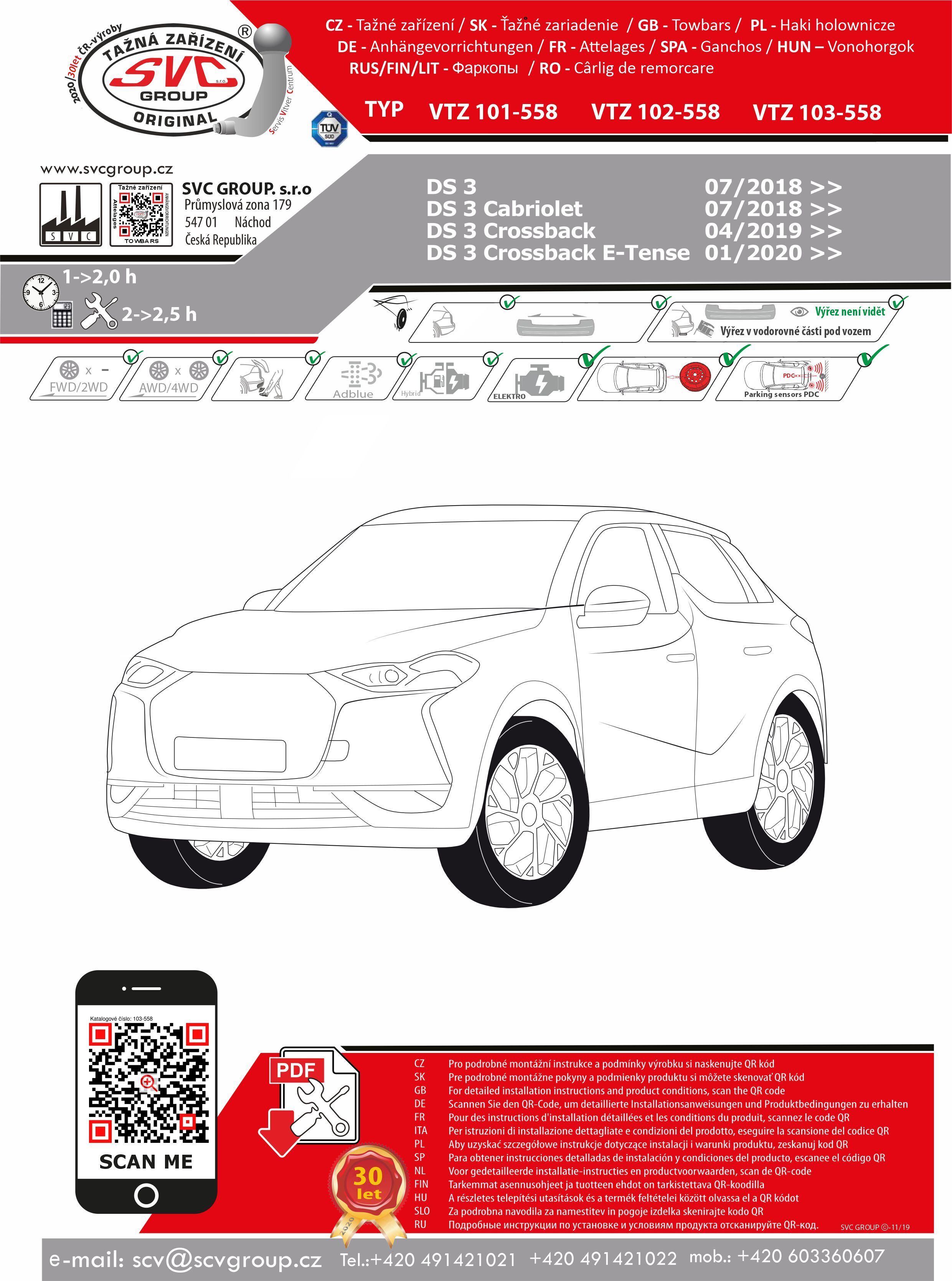 K tažnému zařízení je dodáván zdarma montážního návod, typový list pro zapsání do technického průkazu a na webu výrobce jsou rozšířené informace pro podporu montáže a použití výrobku.