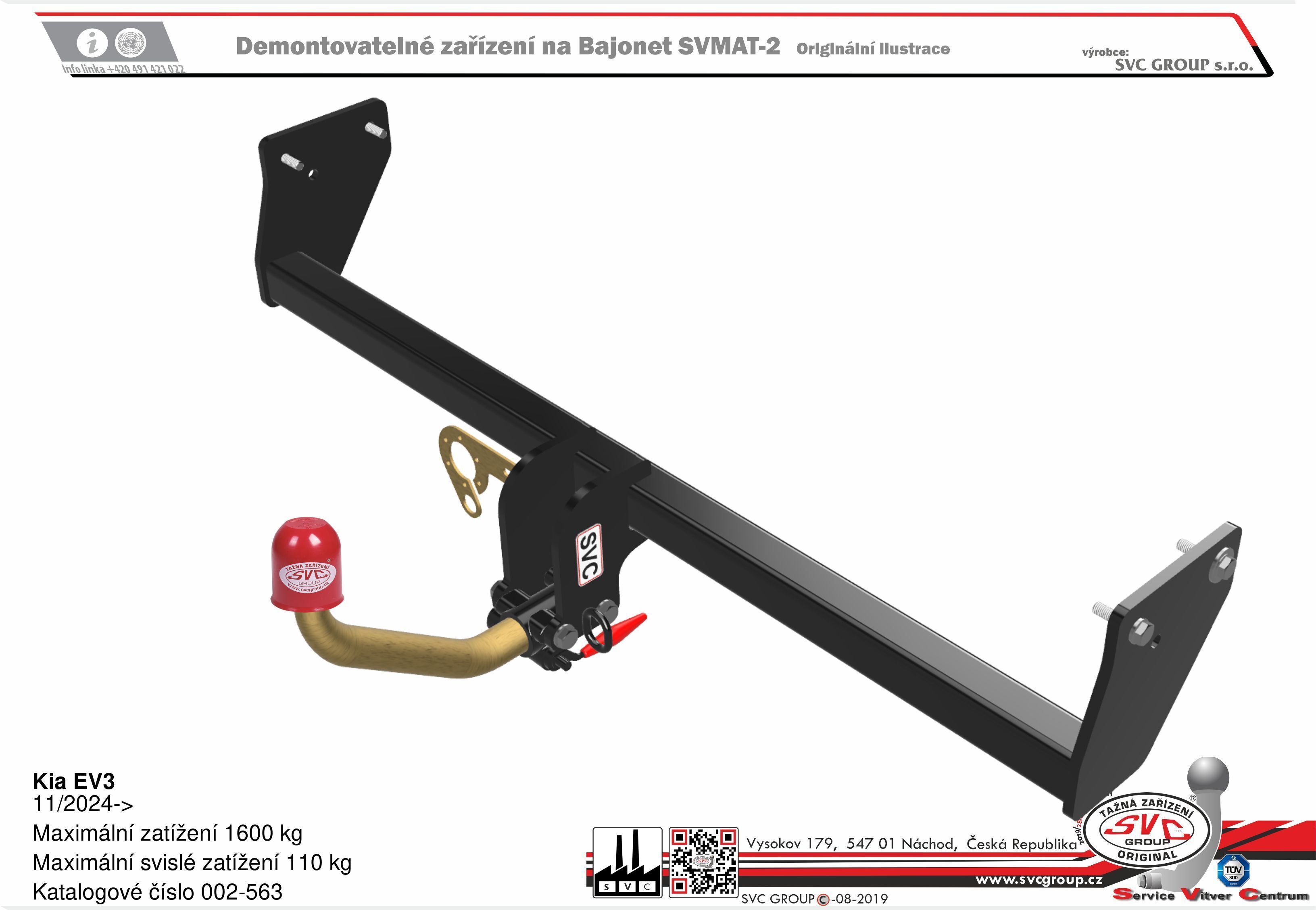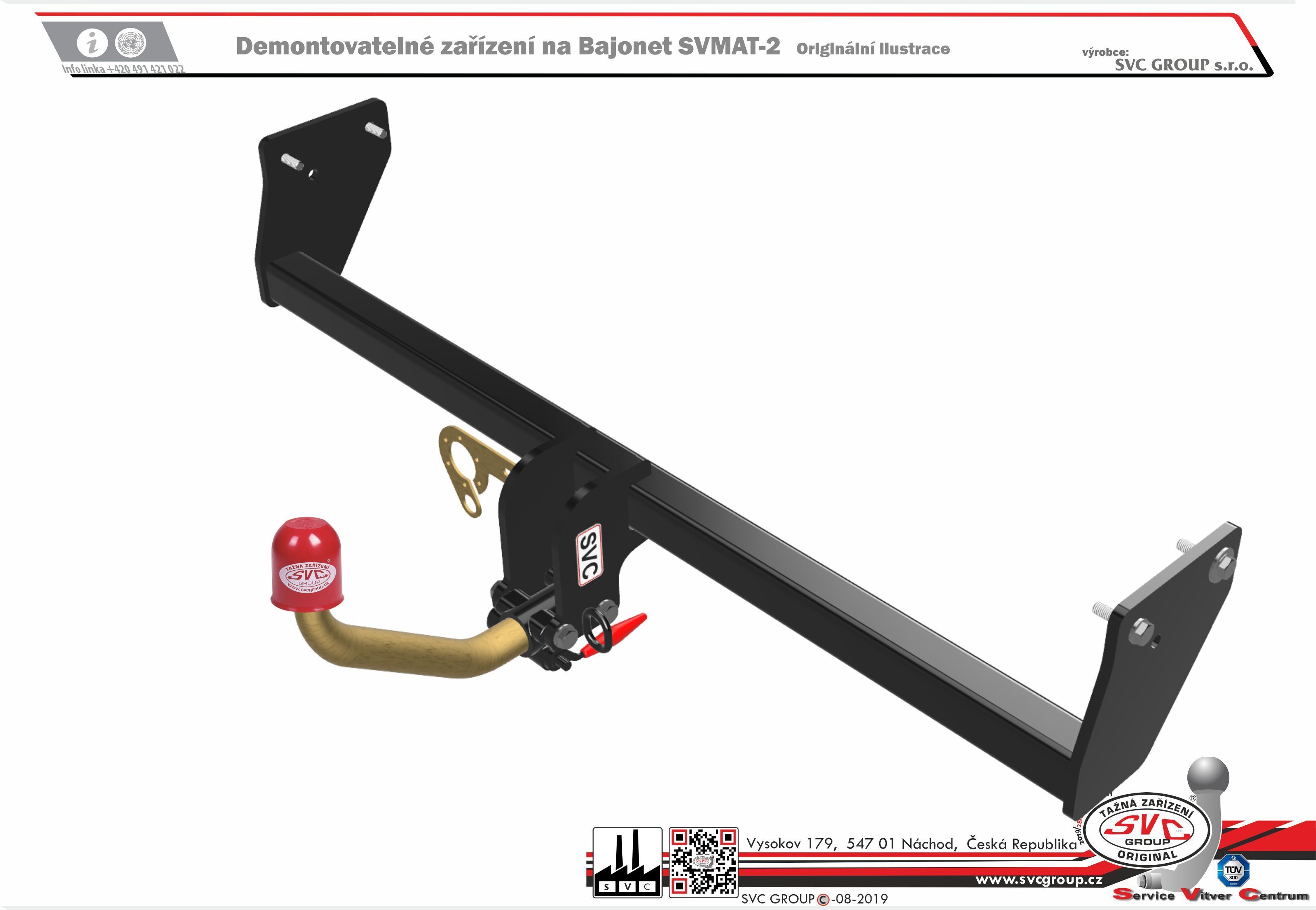 Výrobek je vyráběný dle požadavků vozu a Homologovaný pro prodej a provoz ve všech státech EU dle příslušných norem EHK-55R, podle zastaralé normy e94/20 zrušené již v roce 2016, která nesplňuje dlouhodobě podmínky pro provoz nevyrábíme. Chráněný vzor SVC - bajonet SVMAT-2 je možné zaměnit za dvou šroubové provedení SVC bez výměny celého tažného zařízení.