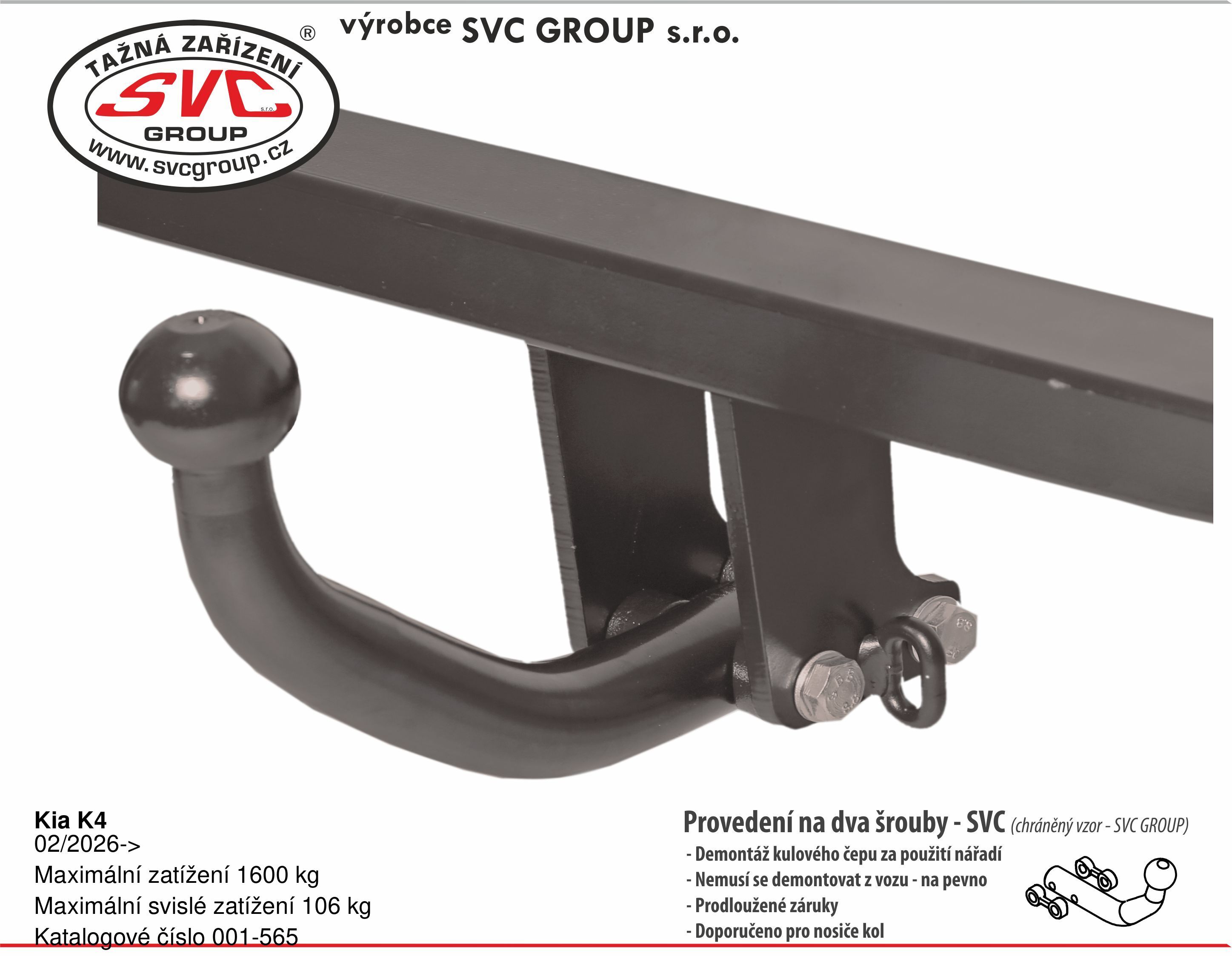 Originální výrobek od SVC neomezuje záruku vašeho vozu po montáži tažného zařízení na vozidlo a doporučujeme pro použití u samosvorných stabilizačních systémů obytných přívěsu a nosičů kol, typ uložení kulového čepu je chráněn užitným vzorem – umožňující na tažné zařízení montáž různých adaptérů.