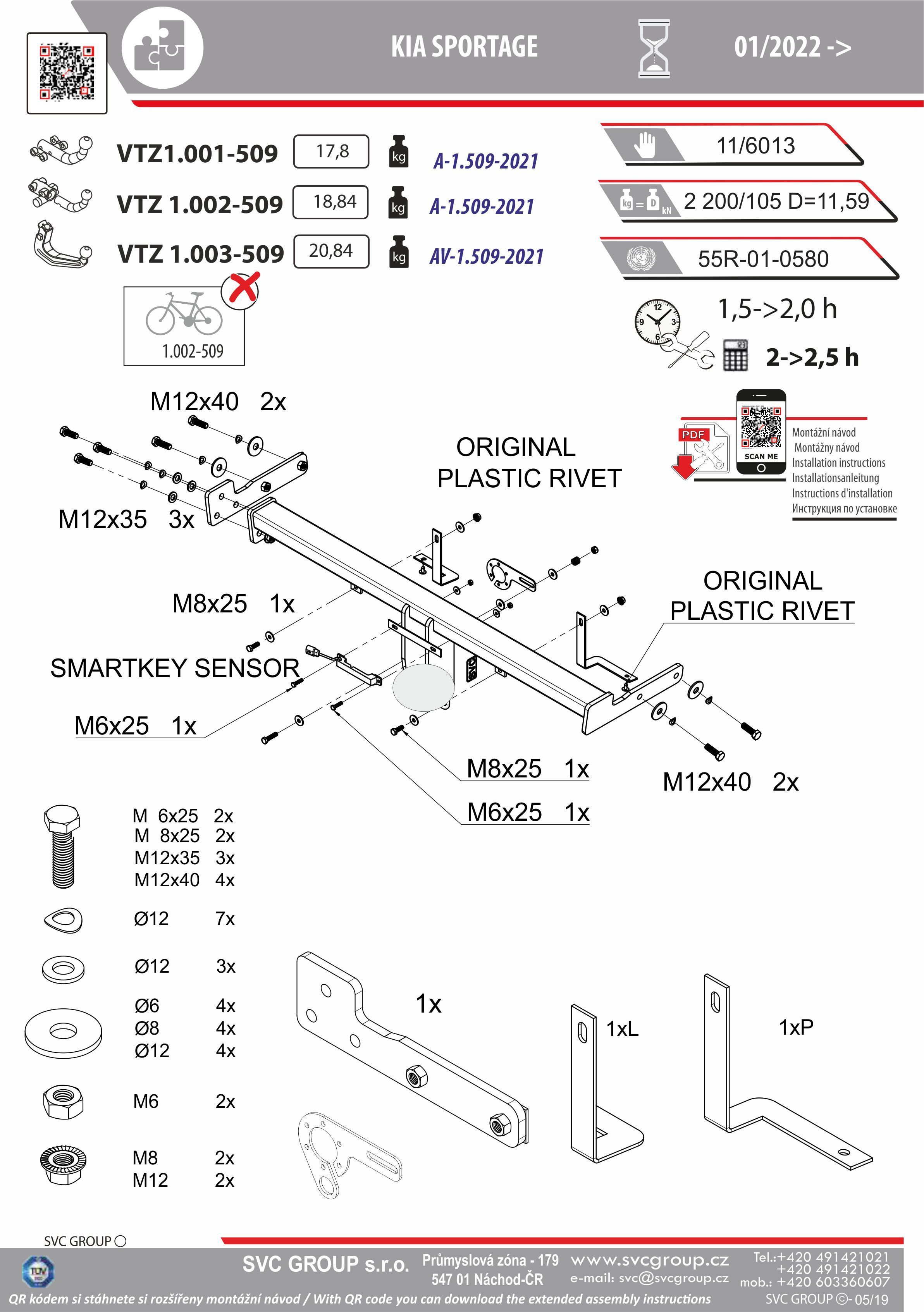K tažnému zařízení je dodáván zdarma montážního návod, typový list pro zapsání do technického průkazu a na webu výrobce jsou rozšířené informace pro podporu montáže a použití výrobku.
