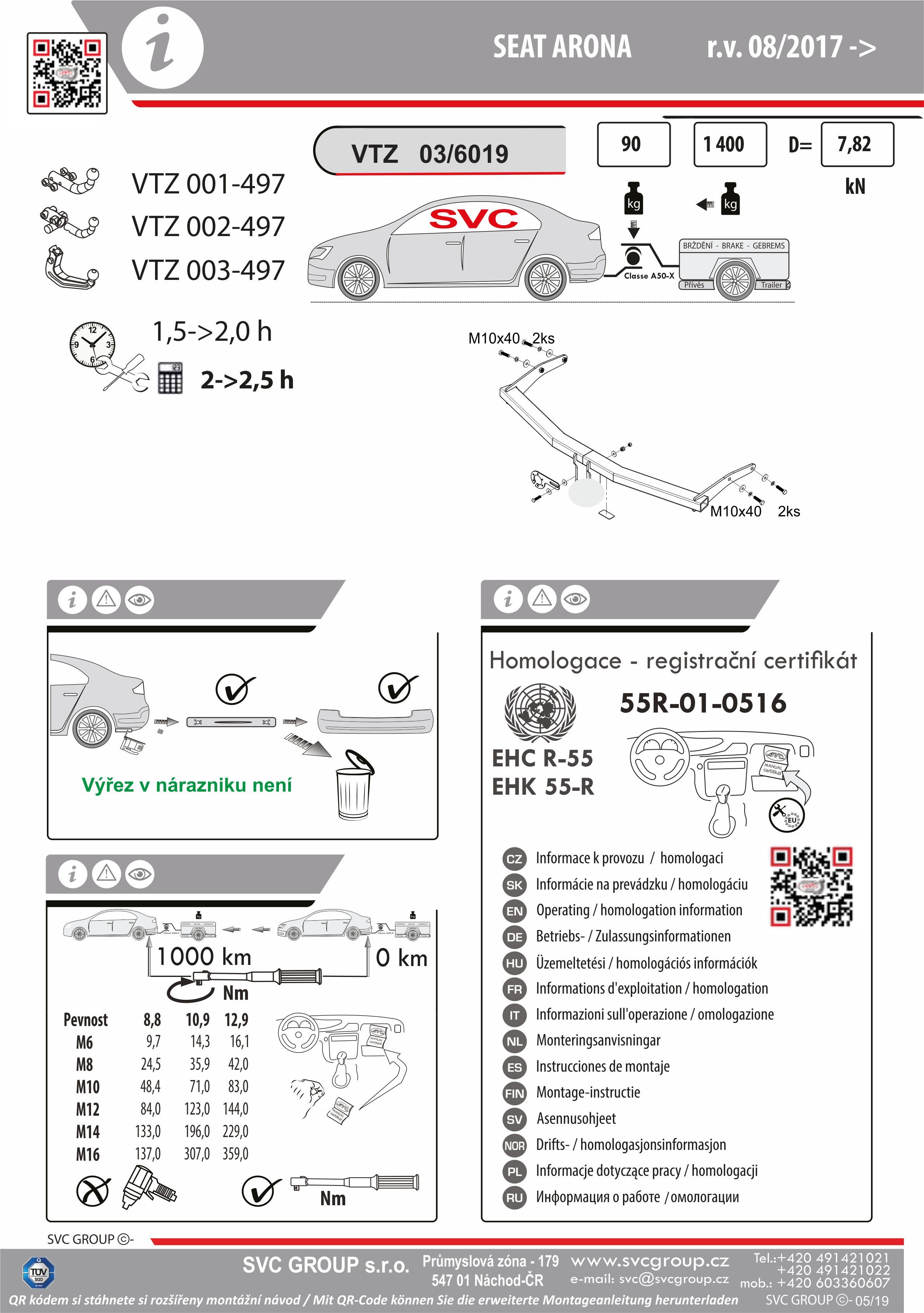 K tažnému zařízení je dodáván zdarma montážního návod, typový list pro zapsání do technického průkazu a na webu výrobce jsou rozšířené informace pro podporu montáže a použití výrobku.