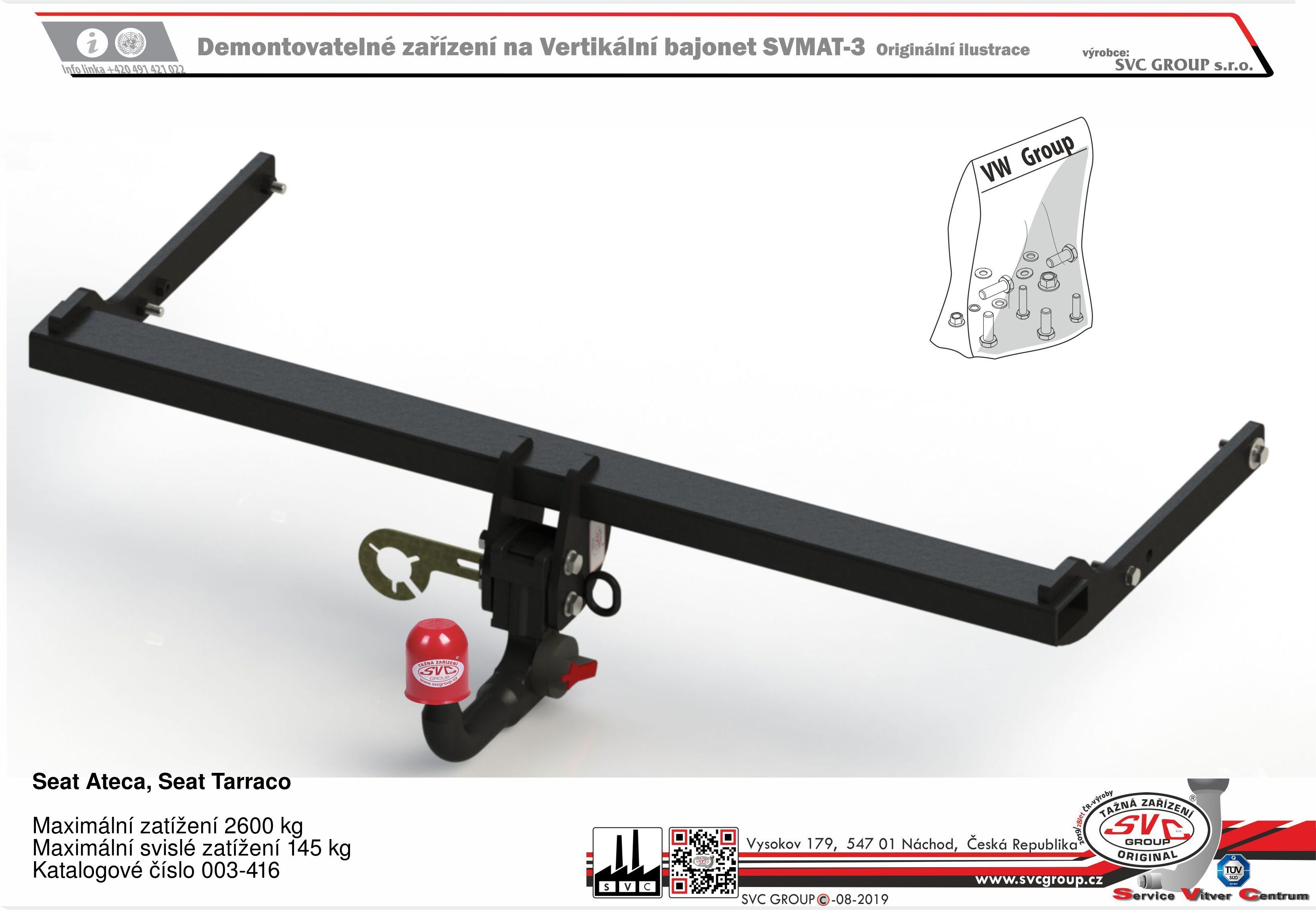 K tažné zařízení je dodáván zdarma montážního návod, typový list pro zapsání do technického průkazu a na webu výrobce jsou rozšířené montážní informace pro podporu montáže, která je jednoduchá a dle požadavku výrobce.