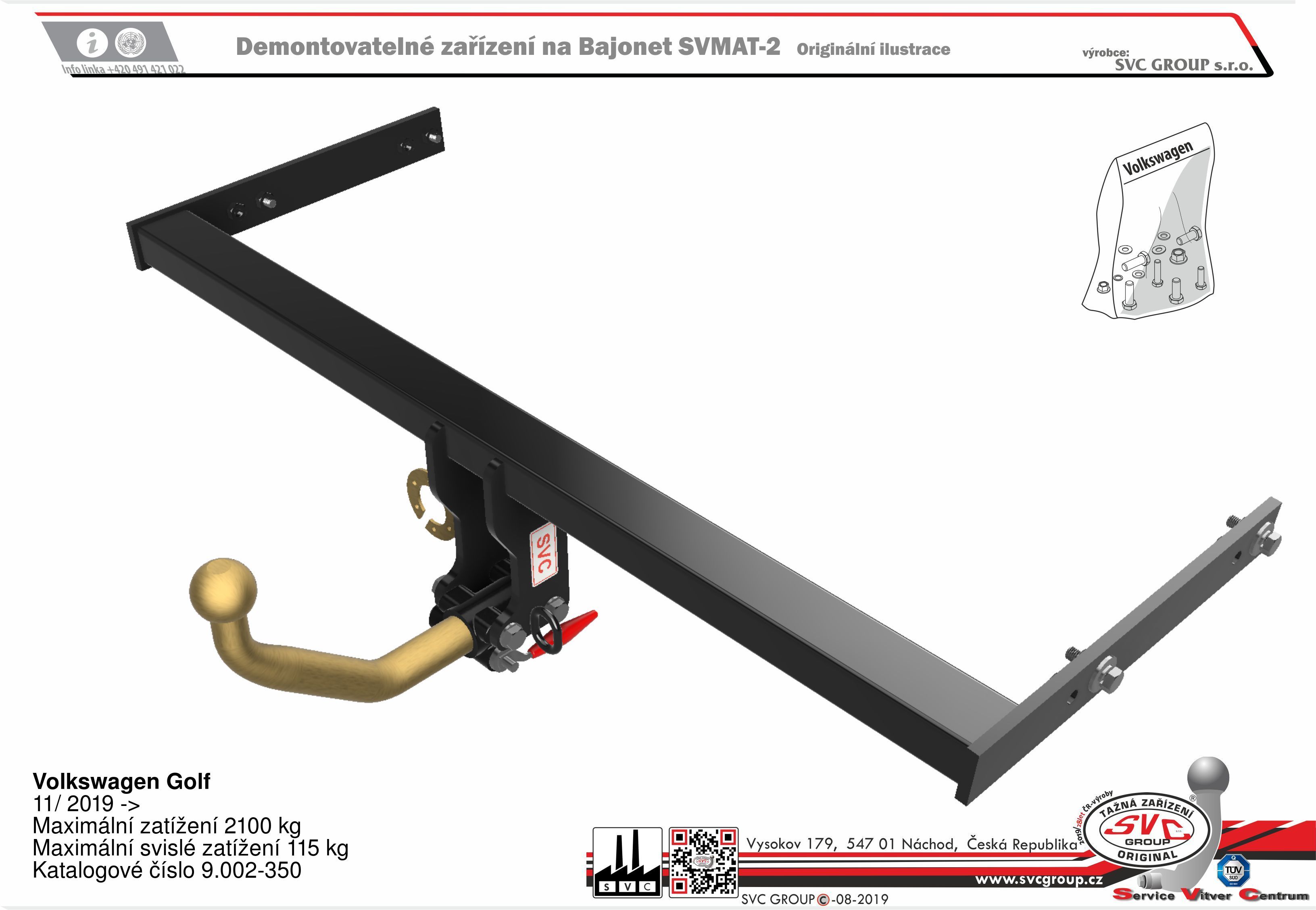 Výrobek je vyráběný dle požadavku vozu a Homologovaný pro prodej a provoz ve všech státech EU dle příslušných norem EHK-55R, podle zastaralé normy e94/20 zrušené již v roce 2016, která nesplňuje, dlouhodobě podmínky pro provoz nevyrábíme. Chráněný vzor SVC - bajonet SVMAT-2 je možné zaměnit za dvou šroubové provedení SVC, bez výměny tažného zařízení.