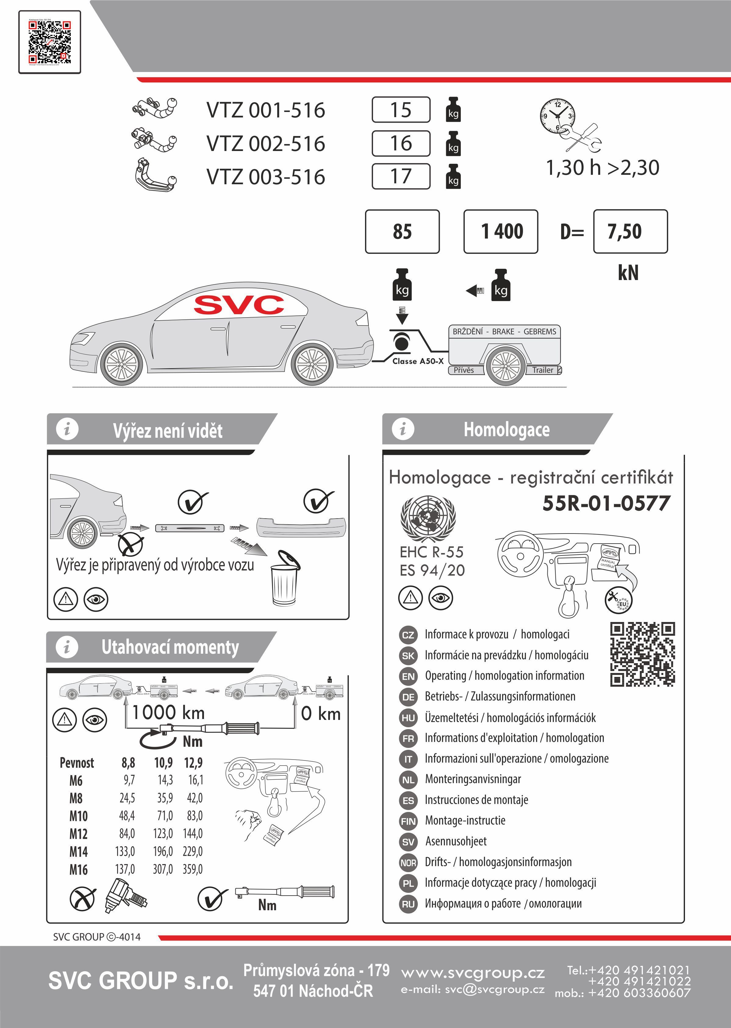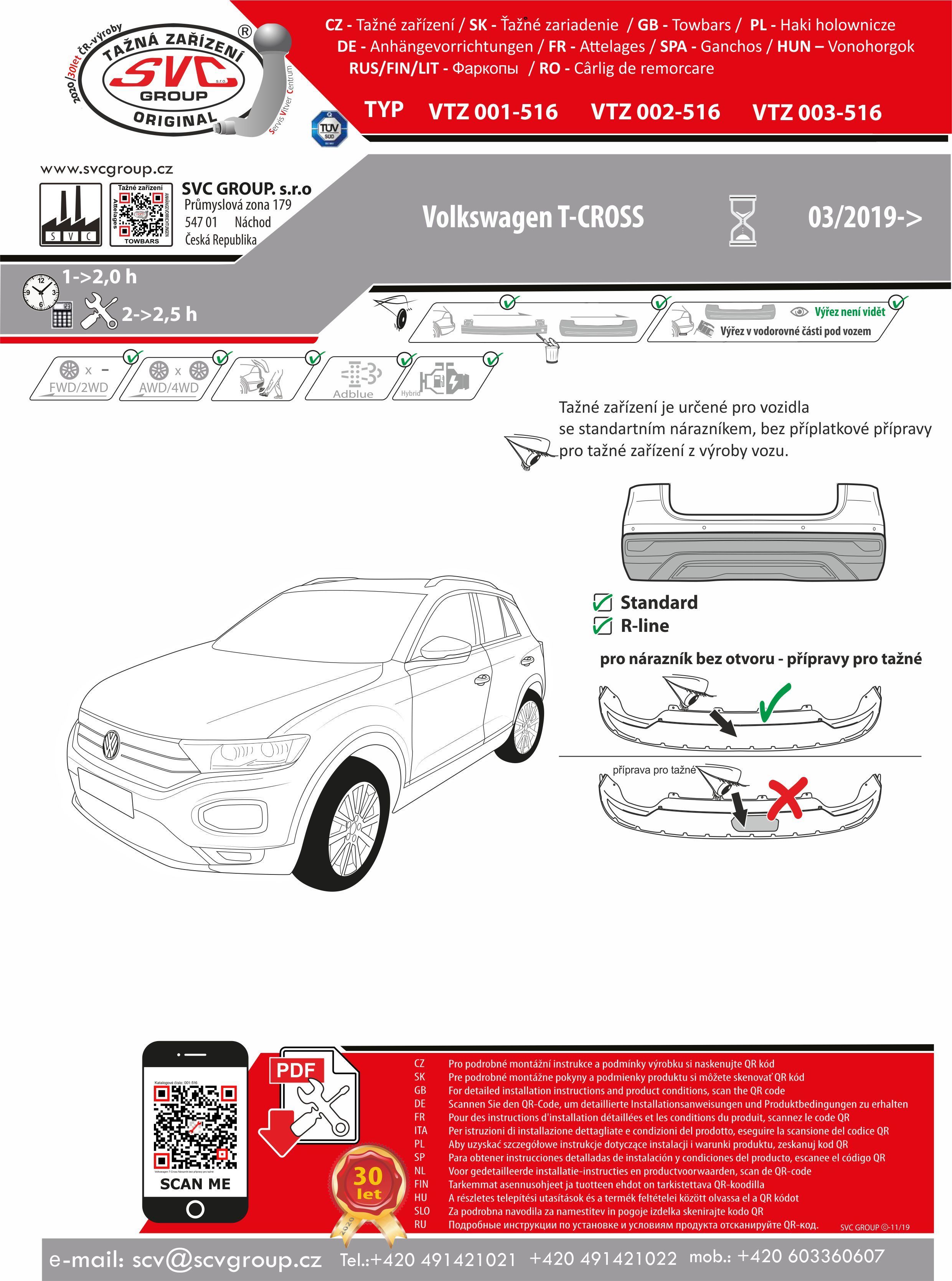 K tažné zařízení je dodáván zdarma montážního návod, typový list pro zapsání do technického průkazu a na webu výrobce jsou rozšířené montážní informace pro podporu montáže, která je jednoduchá a dle požadavku výrobce.