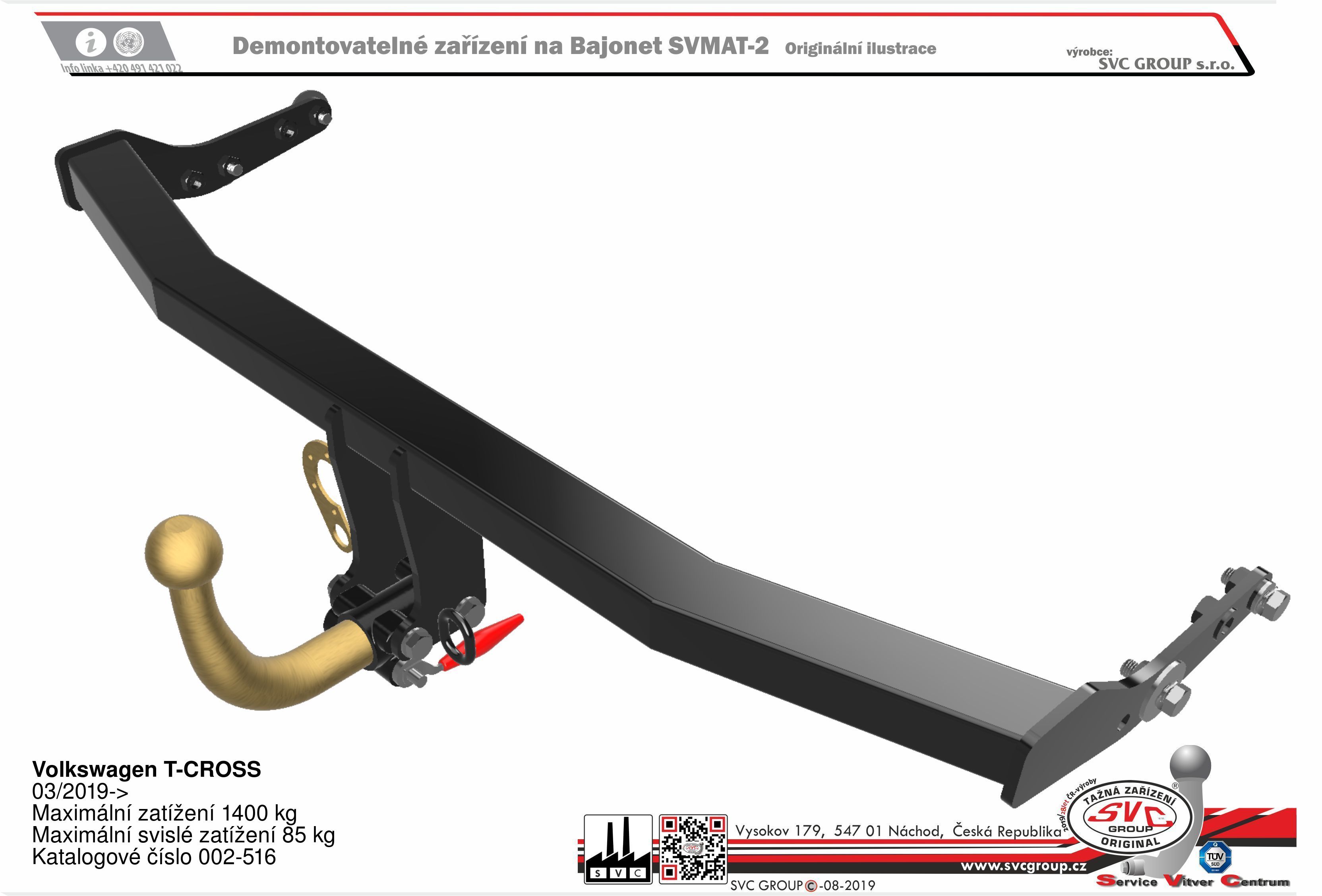 Výrobek je vyráběný dle požadavku vozu a Homologovaný pro prodej a provoz ve všech státech EU dle příslušných norem EHK-55R, podle zastaralé normy e94/20 zrušené již v roce 2016, která nesplňuje, dlouhodobě podmínky pro provoz nevyrábíme. Chráněný vzor SVC - bajonet SVMAT-2 je možné zaměnit za dvou šroubové provedení SVC, bez výměny tažného zařízení.