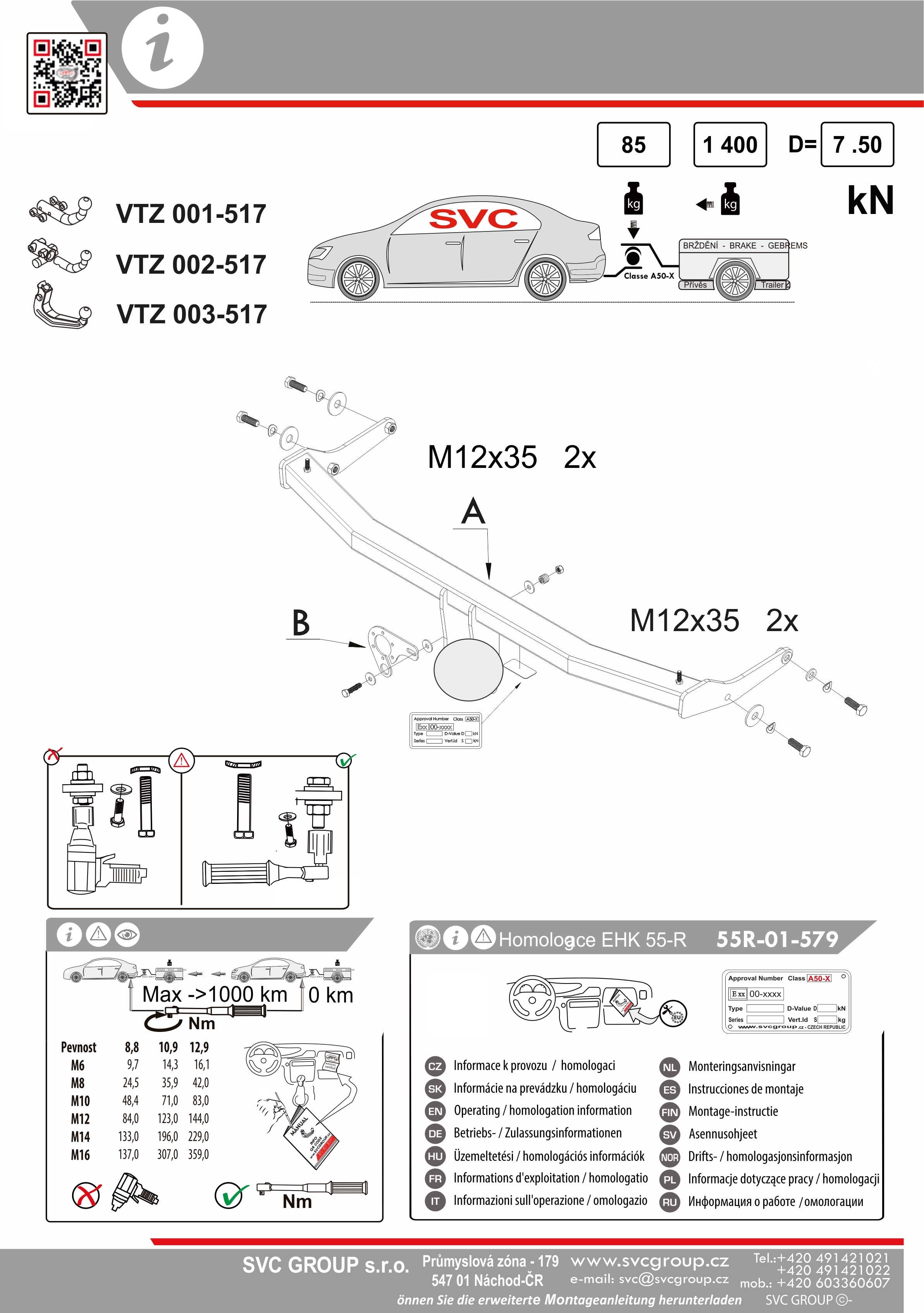 K tažnému zařízení je dodáván zdarma montážního návod, typový list pro zapsání do technického průkazu a na webu výrobce jsou rozšířené informace pro podporu montáže a použití výrobku.