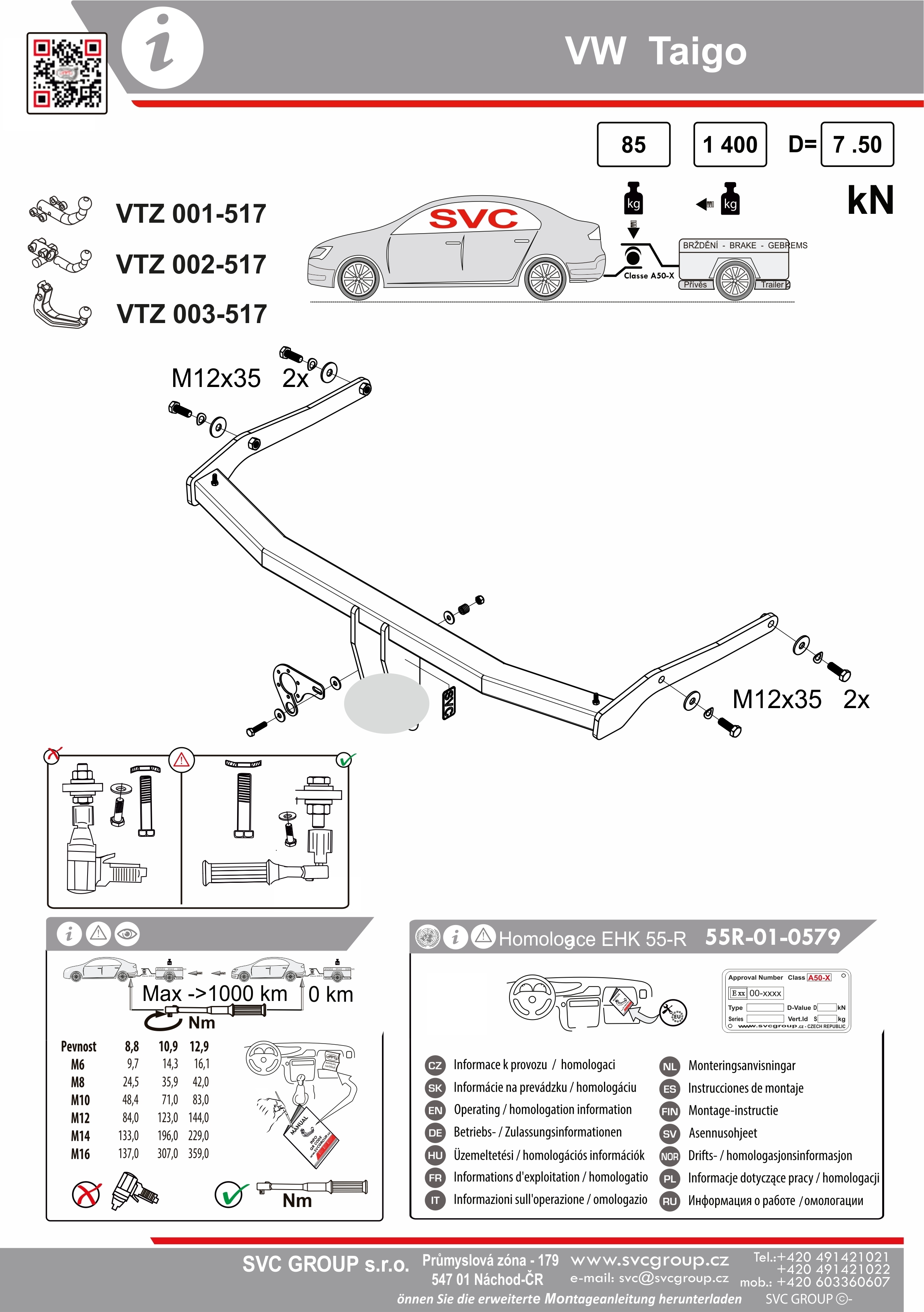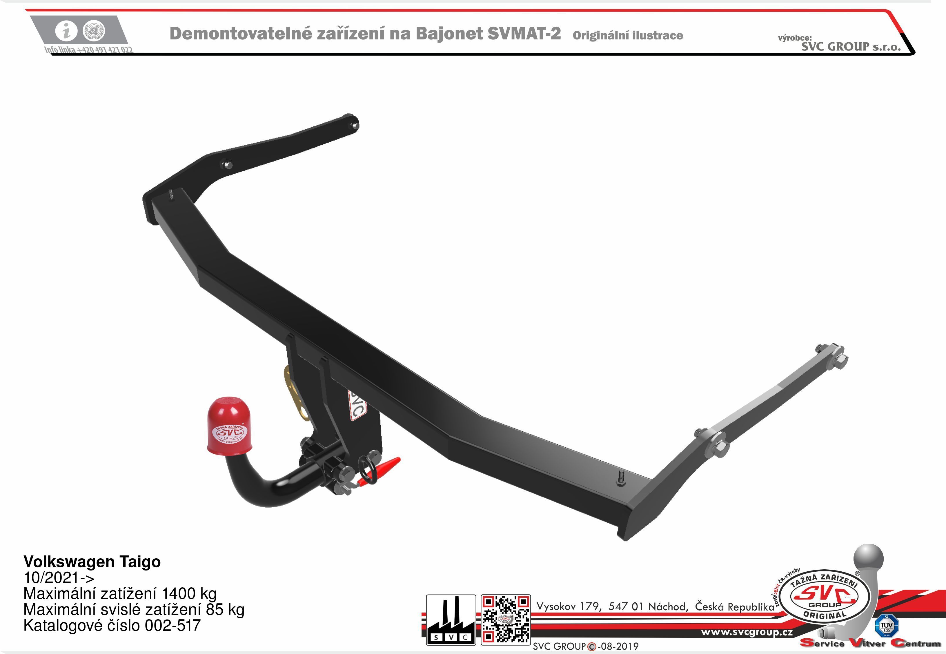 Výrobek je vyráběný dle požadavku vozu a Homologovaný pro prodej a provoz ve všech státech EU dle příslušných norem EHK-55R, podle zastaralé normy e94/20 zrušené již v roce 2016, která nesplňuje, dlouhodobě podmínky pro provoz nevyrábíme. Chráněný vzor SVC - bajonet SVMAT-2 je možné zaměnit za dvou šroubové provedení SVC, bez výměny tažného zařízení.