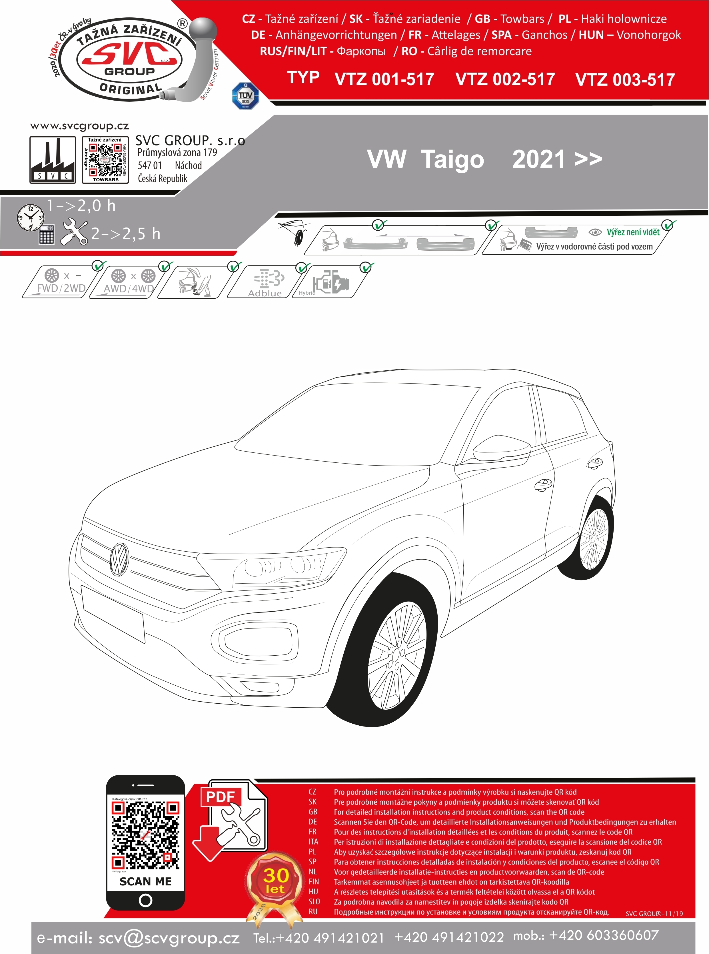K tažnému zařízení je dodáván zdarma montážního návod, typový list pro zapsání do technického průkazu a na webu výrobce jsou rozšířené informace pro podporu montáže a použití výrobku.