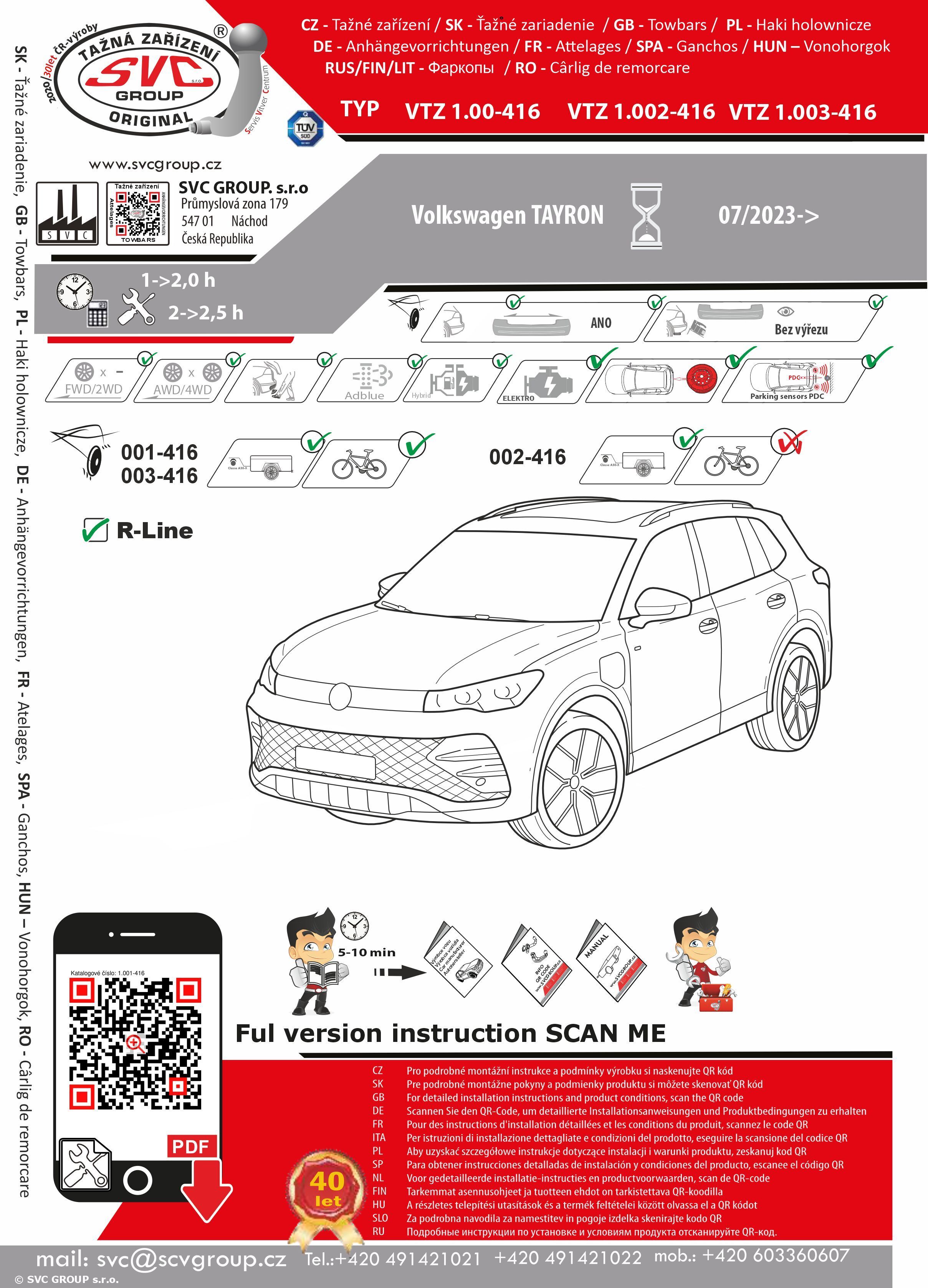 K tažné zařízení je dodáván zdarma montážního návod, typový list pro zapsání do technického průkazu a na webu výrobce jsou rozšířené montážní informace pro podporu montáže, která je jednoduchá a dle požadavku výrobce.