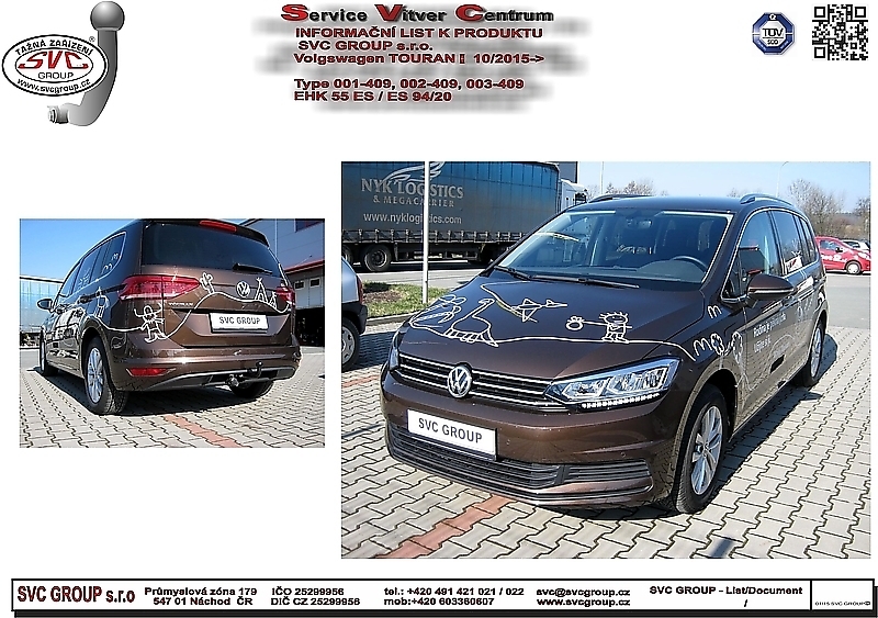 Výrobek je vyráběný dle požadavku vozu a Homologovaný pro prodej a provoz ve všech státech EU dle příslušných norem EHK-55R, podle zastaralé normy e94/20 zrušené již v roce 2016, která nesplňuje, dlouhodobě podmínky pro provoz nevyrábíme. Chráněný vzor SVC - bajonet SVMAT-2 je možné zaměnit za dvou šroubové provedení SVC, bez výměny tažného zařízení.